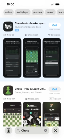 Press the search field and key in the name or subject of the required app.