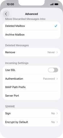 Press the indicator next to "Use SSL" to turn the function on or off. Please note that if you're using Vodafone's outgoing server, turn off SMTP authentication and leave the username and password fields empty.