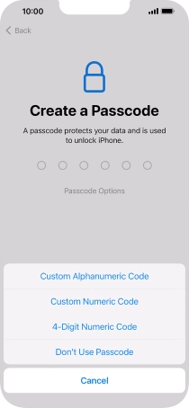 Follow the instructions on the screen to turn on use of phone lock code or press Don't Use Passcode.
