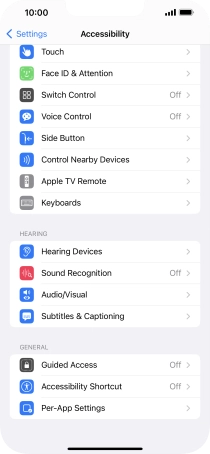 It is possible to select more accessibility settings, you can, e.g., turn the accessibility shortcut on or off, set up Guided Access and set up accessibility functions for certain apps.