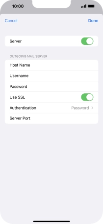 Press Password and key in the password for your email account. Please note that if you're using Vodafone's outgoing server, leave the password field empty.