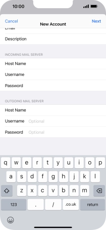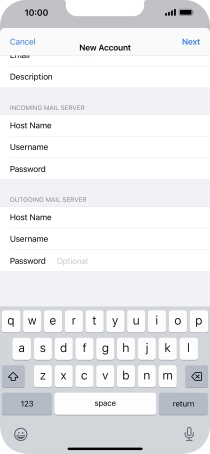 Press Host Name and key in the name of your email provider's incoming server.