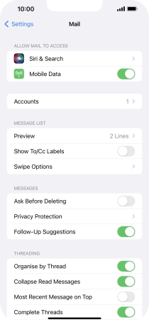 Press the required email account and follow the instructions on the screen to select settings for the specific account.