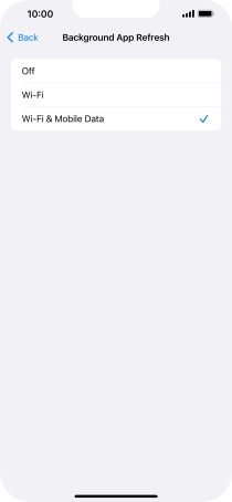 To turn on background refresh of apps using mobile network, press Wi-Fi & Mobile Data.