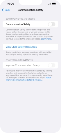 Press the indicator next to "Communication Safety" to turn the function on or off.