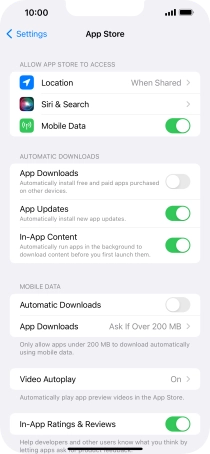 Press the indicator next to "App Downloads" to turn the function on or off.