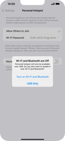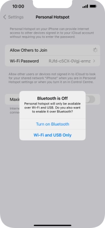 Key in the password for the personal hotspot and establish the connection.