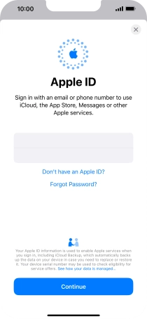 If you don t have an Apple ID, press Don't have an Apple ID? and follow the instructions on the screen to create an Apple ID.