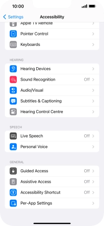 You can select different spoken assistance settings, e.g. Live Speech and Personal Voice, which make it easier for people with speech difficulties to communicate with others e.g. during voice or video calls.