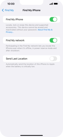 Press the indicator next to "Find My iPhone" to turn on the function.