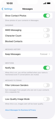 Press the indicator next to "MMS Messaging" to turn on the function.