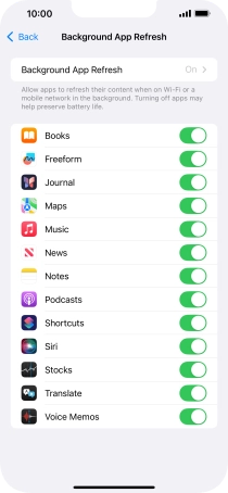 Select settings for background refresh of apps on your Apple iPhone 14 Plus iOS 18