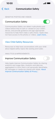 Press the indicator next to "Communication Safety" to turn the function on or off.