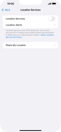 Press the indicator next to "Location Services" to turn the function on or off.