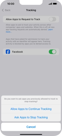 Press the indicators next to the required apps to turn tracking request for each app on or off.