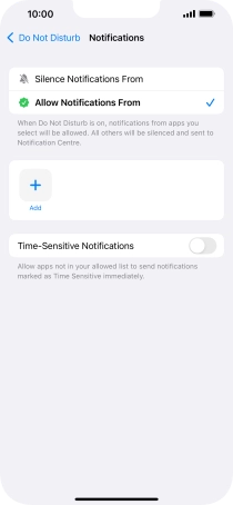 Press Apps and follow the instructions on the screen to select which apps you would like to receive notifications from when Do Not Disturb is turned on.