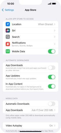 Press the indicator next to "App Downloads" to turn the function on or off.