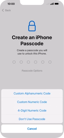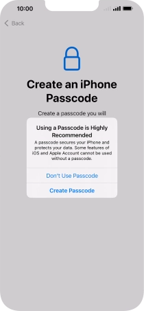 Follow the instructions on the screen to turn on use of phone lock code or press Don't Use Passcode.