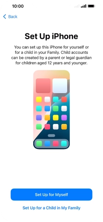 If your phone will be used by a child below the age of 13, follow the instructions on the screen to set up an Apple ID for the child.