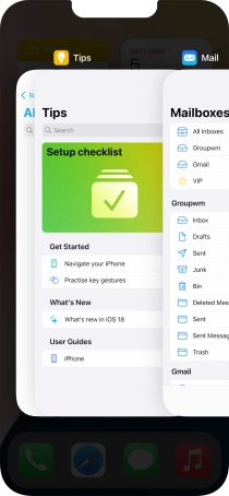 Slide your finger slowly upwards starting from the bottom of the screen until the list of running applications is displayed.