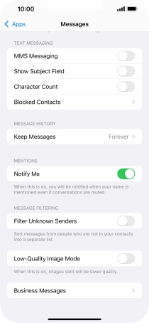 Press the indicator next to "MMS Messaging" to turn on the function.