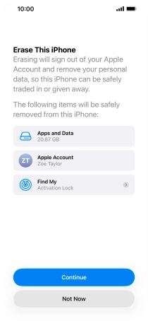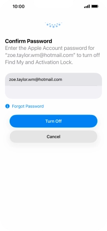 Key in the password for your Apple Account and press Turn Off. Wait a moment while the factory default settings are restored. Follow the instructions on the screen to set up your phone and prepare it for use.