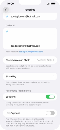 Press the indicator next to "FaceTime" to turn the function on or off.