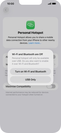 If Wi-Fi is turned on, press Wi-Fi and USB Only.