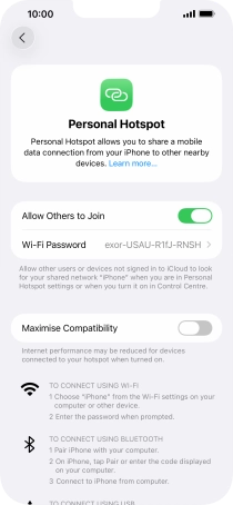 Press Personal Hotspot.