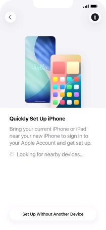 Follow the instructions on the screen to transfer content from another device running iOS 11 or later or press Set Up Without Another Device.