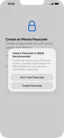 Follow the instructions on the screen to turn on use of phone lock code or press Don't Use Passcode.