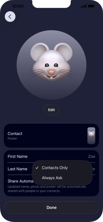 Press the name fields and follow the instructions on the screen to edit your name on the Contact Poster.