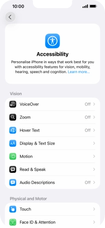 It is possible to select more accessibility settings, you can, e.g., turn the accessibility shortcut on or off, set up Guided Access and set up accessibility functions for certain apps.
