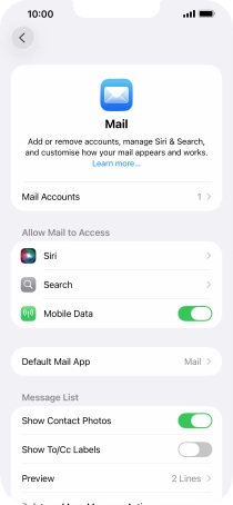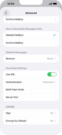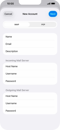 Press the required email account and follow the instructions on the screen to select settings for the specific account.