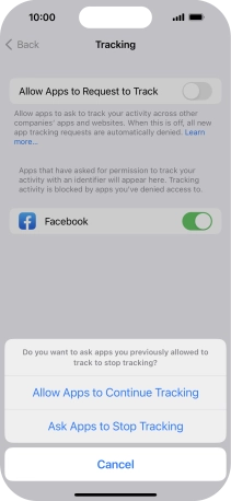 Turn tracking request for downloaded apps on your Apple iPhone 14 Pro iOS 16.0 on or off