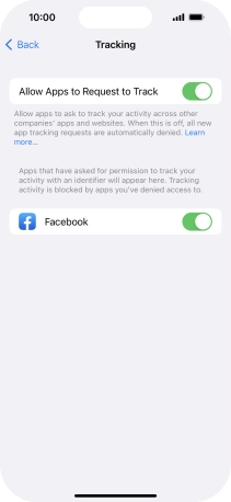 Press the indicator next to "Allow Apps to Request to Track" to turn the function on or off.