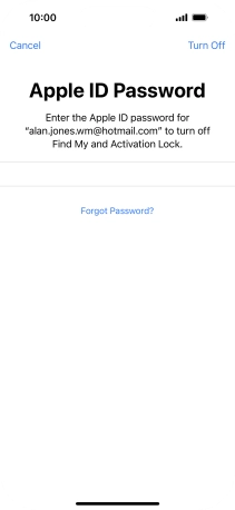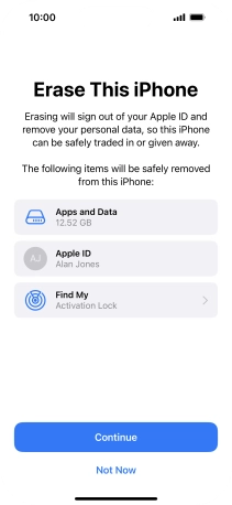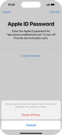 Key in the password for your Apple ID and press Erase iPhone. Wait a moment while the factory default settings are restored. Follow the instructions on the screen to set up your phone and prepare it for use.