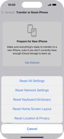 Restore factory default settings on your Apple iPhone 14 Pro iOS 16.0