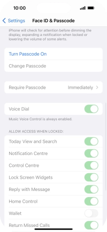 Turn use of phone lock code on your Apple iPhone 14 Pro iOS 16.0 on or off