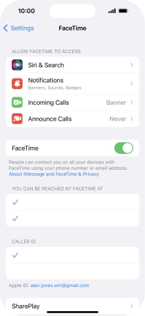Press the required setting below "YOU CAN BE REACHED BY FACETIME AT".