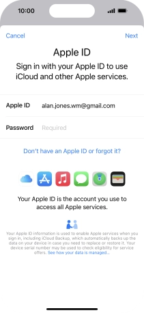 If you don t have an Apple ID, press Don't have an Apple ID or forgot it? and follow the instructions on the screen to create an Apple ID.