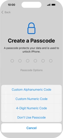 Follow the instructions on the screen to turn on use of phone lock code or press Don't Use Passcode.