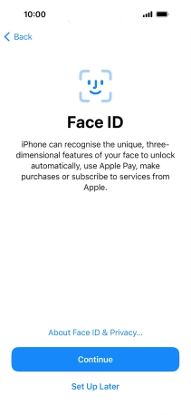 Follow the instructions on the screen to turn on use of Face ID or press Set Up Later.