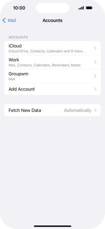 Press the required email account and follow the instructions on the screen to select settings for the specific account.