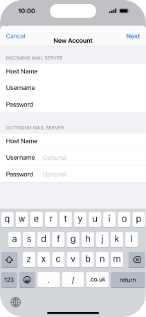 Press Host Name and key in the name or IP address of your email provider's outgoing server. Please note that if you can't send email messages when using your email provider's outgoing server, key in smtp.vodafone.net.au (Vodafone's outgoing server).