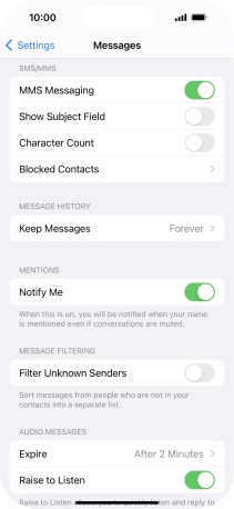 Press the indicator next to "MMS Messaging" to turn on the function.