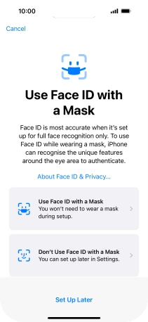 Press Get Started and follow the instructions on the screen to set up Face ID.