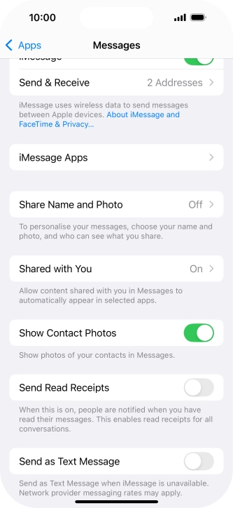 Press the indicator next to "Send as Text Message" to turn the function on or off.