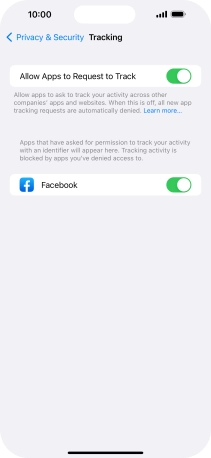 Press the indicator next to "Allow Apps to Request to Track" to turn the function on or off.