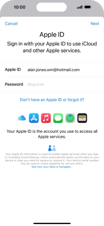 If you don t have an Apple ID, press Don't have an Apple ID or forgot it? and follow the instructions on the screen to create an Apple ID.